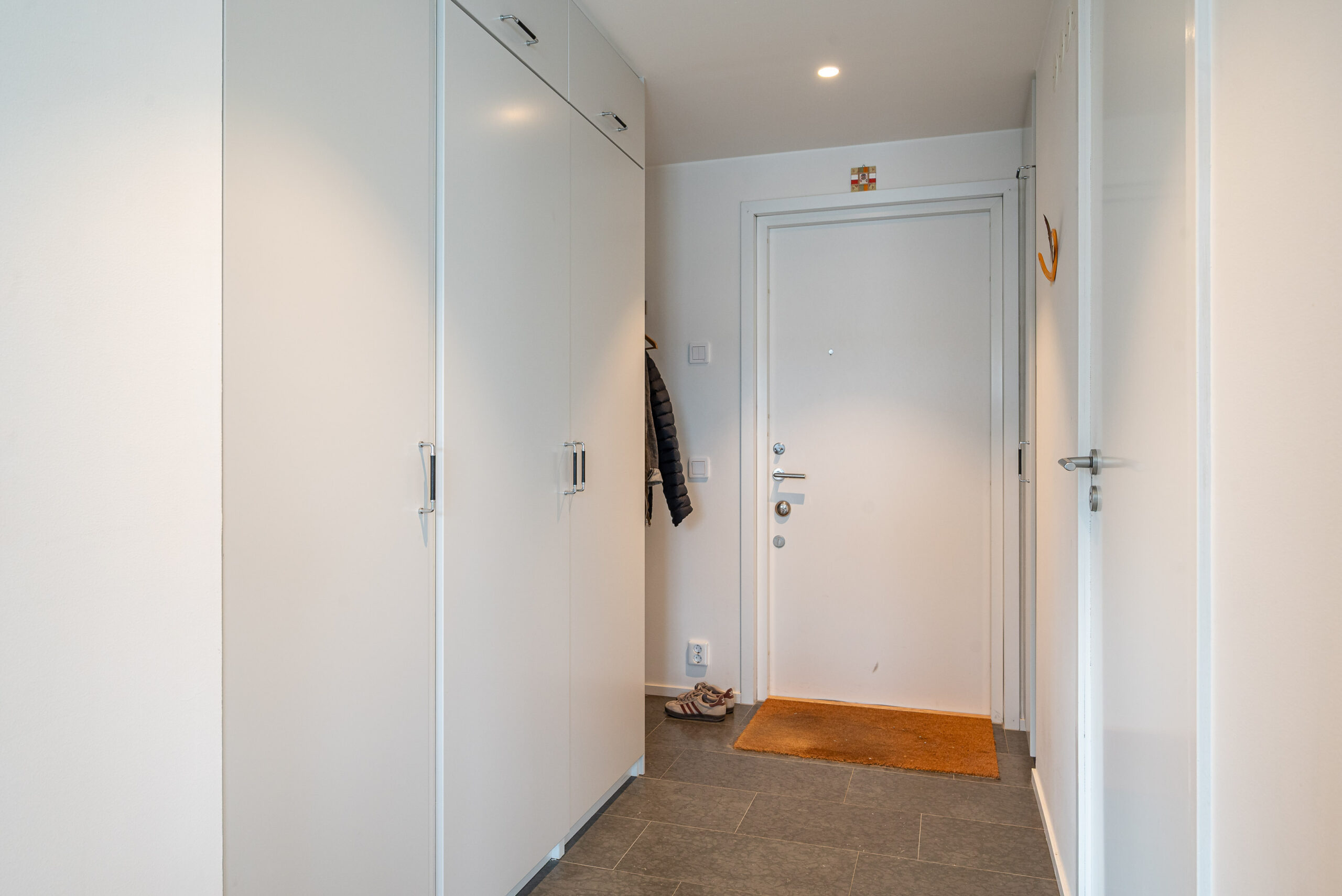 I entrén ligger klinkergolv och i entrén finns plats för ytterkläder plus 3 garderober med bra förvaringsutrymme.